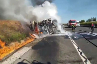 Şanlıurfa'da kaza sonucu devrilen yakıt tankeri alev topuna döndü.