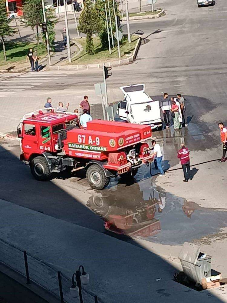 Olay, saat 10.00 sıralarında Hürriyet Mahallesi Cumapazarı kavşağında meydana geldi. Sedat G. idaresindeki 67 LH 036 plakalı otomobil, seyir halindeyken motor kısmından alev aldı. Sedat G.'nin dışarıya çıkarak söndürme tüpüyle müdahale ettiği sırada tesadüfen yoldan geçen Karabük Orman İşletme Müdürlüğü ekipleri de arazözle yangına müdahalede bulundu. Yangın büyümeden söndürülürken, otomobil ise kullanılamaz hale geldi.
