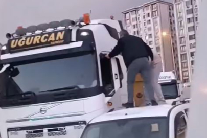 Aracın tavanına çıkıp TIR şoförünü darbettiler