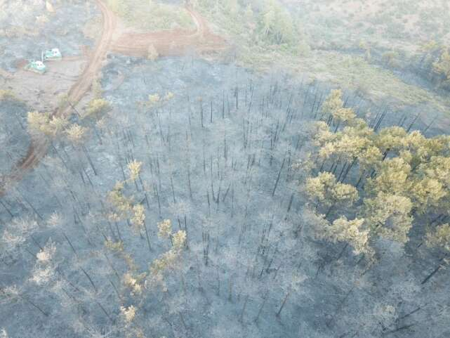 Bursa'da ormanlık alanda başlayan yangın rüzgarın etkisiyle kısa sürede büyüdü. Yaklaşık 60 hektarlık ormanlık alan yanarak küle döndü. Ekiplerin yoğun mücadelesi sonucu yangın sabaha karşı kontrol altına alındı. Yangının ormanlık alana verdiği zarar dron ile havadan görüntülendi.