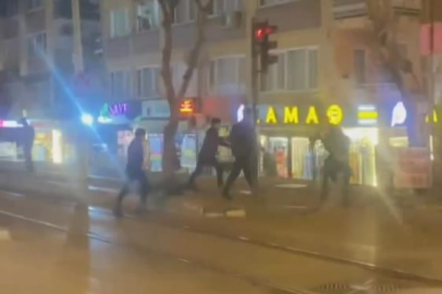 Bursa’da iki grup arasında çıkan tartışma caddeye taştı. Tarafların birbirine tekme ve yumruklarla vurdukları anlar kameraya yansırken, olayı çevredekiler güçlükle ayırdı.