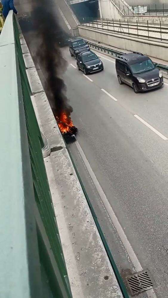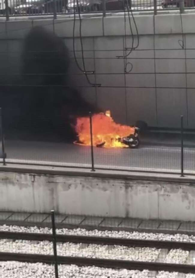 Edinilen bilgiye göre, seyir halindeki kuryeye ait bir motosiklet henüz bilinmeyen bir sebepten dolayı alev aldı. Motosiklet sürücüsü aracını yol kenarındaki bariyerlere dayayıp uzaklaştı. Motosiklet kısa sürede alev topuna döndü. Yükselen dumanlar yoldan geçen sürücülere korku dolu anlar yaşattı. Motosikletin yanma anları çevredeki vatandaşlar tarafından cep telefonu ile anbean kaydedildi.