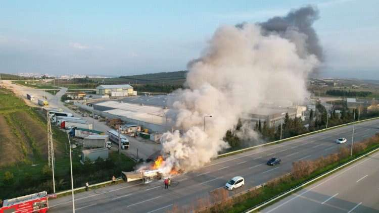 Yangın, merkez Nilüfer ilçesi İrfaniye Mahallesi İstanbul-İzmir Otoyol girişinde meydana geldi. Edinilen bilgiye göre, bir TIR'ın dorsesi henüz bilinmeyen bir sebeple devrildi. Devrilen dorse alev alırken sürücü dorseyi TIR'dan ayırarak durumu itfaiye ekiplerine bildirdi. Olay yerine gelen itfaiye ekipleri yangına yaklaşık yarım saat müdahale ederek kontrol altına aldı.