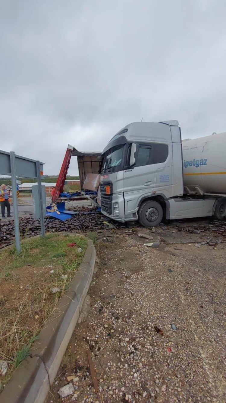 Bursa’da İnegöl-Yenişehir yolu üzerinde meydana gelen kazada şişe yüklü TIR ile tanker çarpıştı. Kazada 2 sürücü de yaralandı.