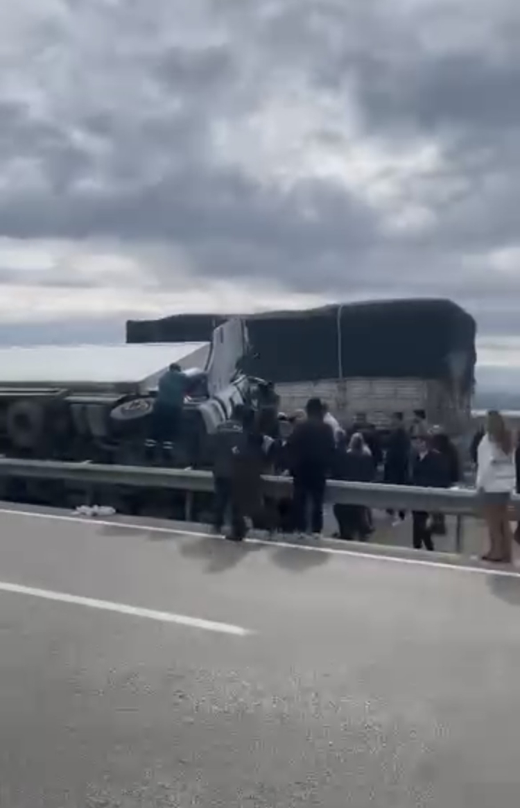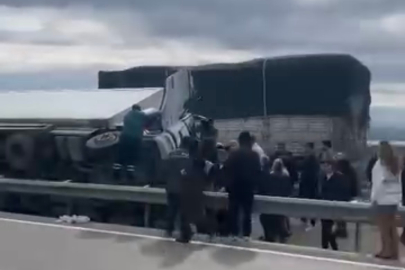 Kaza, Karacabey mevkii İzmir Yolu üzerinde meydana geldi. Edinilen bilgiye göre, 15 EN 782 plakalı kamyon ile Karacabey'e gitmek için yola çıkan sürücü, Karacabey girişinde kontrolden çıkıp bariyerleri aştı. Devrilen kamyonu gören, çevredekiler yardıma koşarken, 112 ekiplerine ihbarda bulunuldu. Sağlık ekiplerince yaralanan sürücünün ilk müdahalesi olay yerinde yapılıp hastaneye sevk edildi. Olayla ilgili tahkikat başlatıldı.
