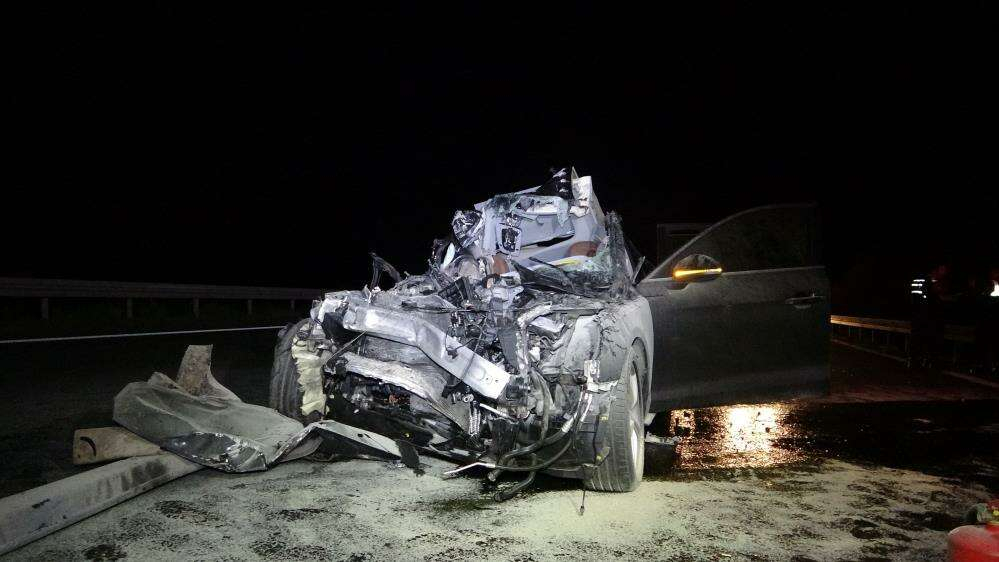 Bursa'da seyir halindeki kamyona lüks otomobil arkadan çarptı. Feci kazada lüks otomobil hurda yığınına dönerken sürücü feci şekilde hayatını kaybetti.