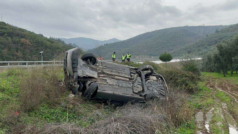 Kaza, Bursa'nın İznik ilçesinde meydana geldi. Edinilen bilgiye göre, Yenişehir ilçesinden İznik istikametine gitmekte olan 46 DH 989 plakalı otomobil sürücüsü, viraja geldiğinde hızını ayarlayamadı. Yağmur sebebiyle yerlerin de kayganlığıyla direksiyon hakimiyetini kaybeden sürücü, otomobiliyle birlikte tarlaya uçtu. Ters dönen araçtan şoför ve yanındaki kişi yaralı olarak kurtuldu.