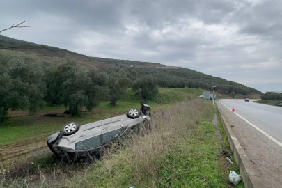Bursa'da virajı alamayan otomobil, yerlerin de kaygan olması sebebiyle tarlaya uçtu. Otomobildeki 2 kişi, yaralı olarak hastaneye kaldırıldı.