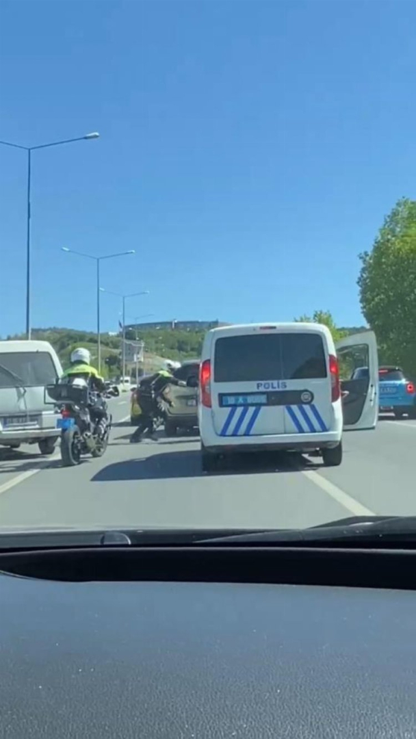 Mudanya-Bursa Yolu’nda ekiplerden kaçmaya çalışan motosiklet sürücüsü, trafiği birbirine kattı.