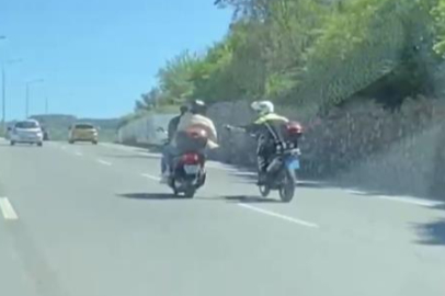 Bursa’nın Mudanya ilçesinde bir motosiklet sürücüsü, ekiplerin ‘Dur’ ihtarına uymayarak kilometrelerce kaçtı. Trafiği birbirine katan sürücü, amatör kameraya yansıdı.