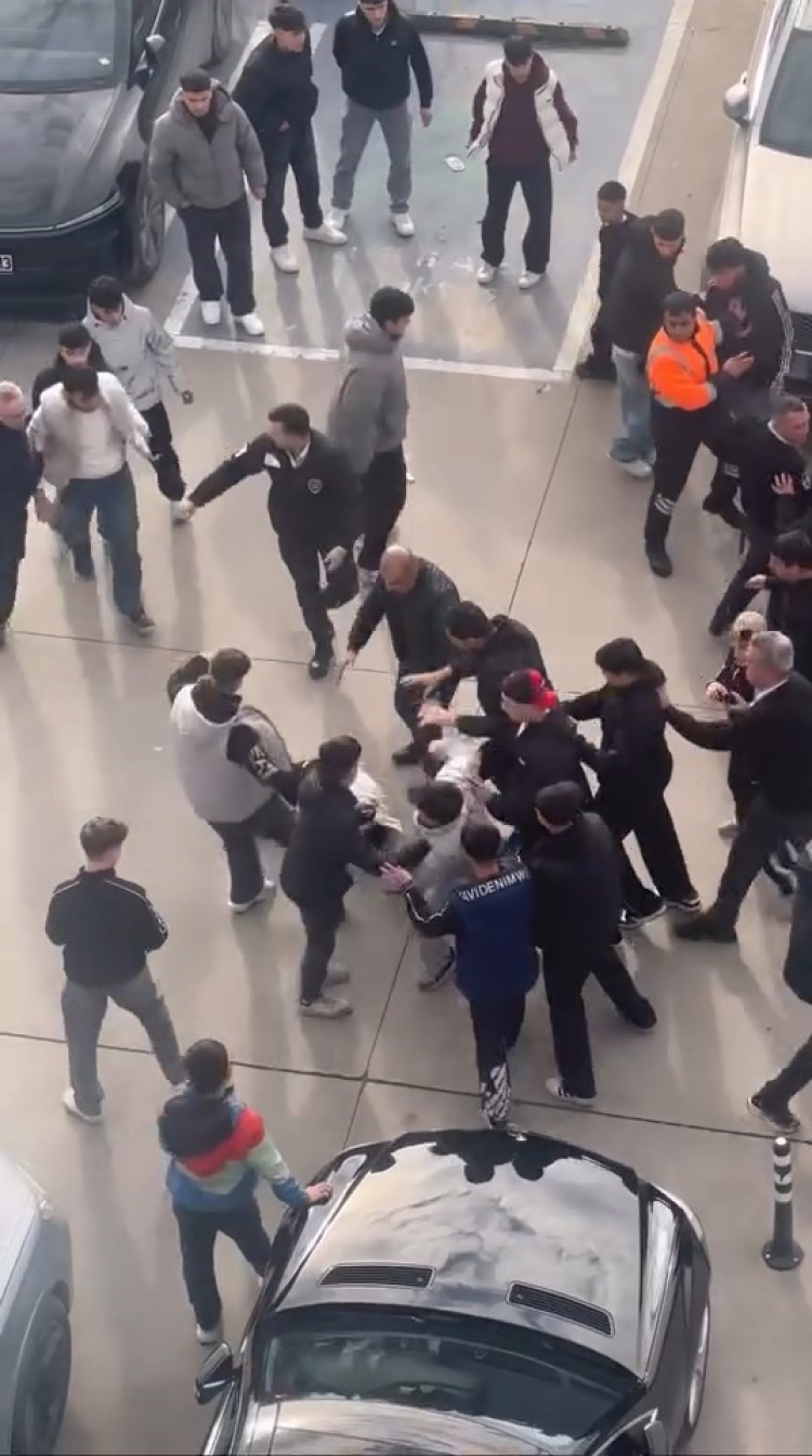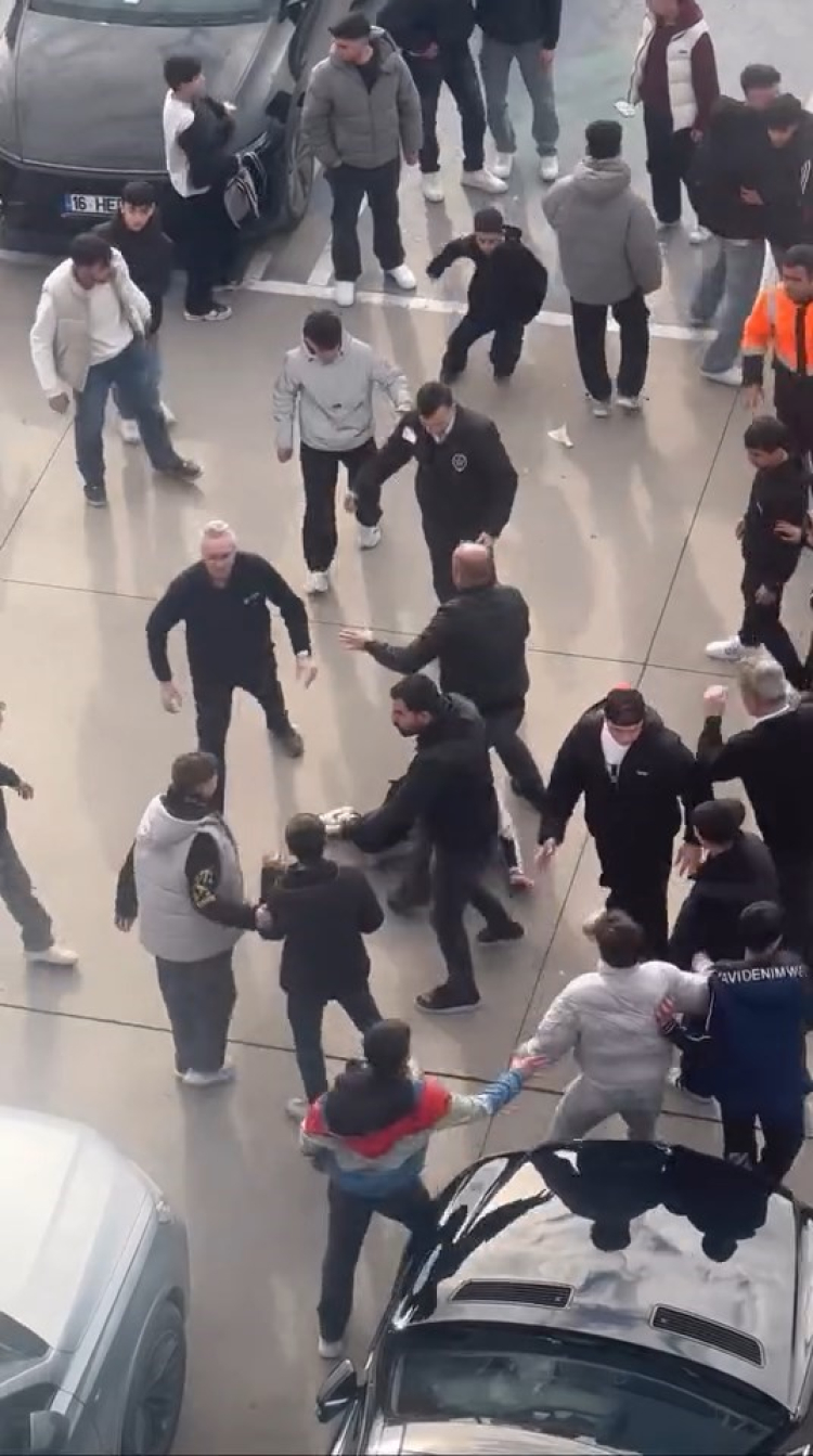 Bursa'da Korupark alışveriş merkezinin otoparkında birbirine giren gençler, herkese korku dolu anlar yaşattı.
