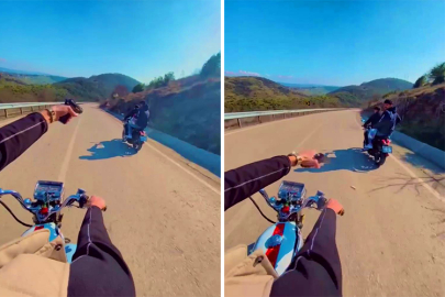 Bursa'da motosikletli gençler eğlencenin dozunu kaçırınca seyir halindeyken birbirlerine kurusıkı tabanca ile ateş ettiler. O anlar cep telefonu kamerasına yansıdı.