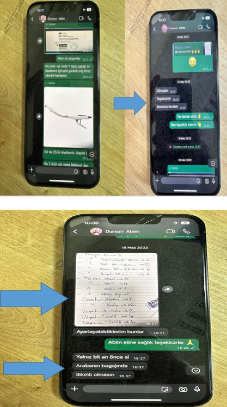 Devletin milyonlarca lira zarara uğratıldığı tıbbi malzeme yolsuzluğu iddianamesinde C.I.'nın D.B. isimli şüpheli ile yapmış olduğu Whatsapp görüşmelerinde; tıbbi malzeme talep ettiği ve bu taleplerin sürekliliğinin olduğu, D.B. isimli şüphelinin kendi gözetiminde ve sorumluluğunda olan malzemeleri hastaneden çıkararak aracının bagajında sakladığı ve bu durumun kendisinde korkuya sebep olduğu şüpheliden hemen almasını istediği, C.I.'nın D.B.'den tıbbı ürün talep ettiği, D.B.'nin de talep edilen bu tıbbi ürünler karşılığı annesinin de aralarında bulunduğu farklı kişilerin açık kimlik ve IBAN bilgilerini attığı ve bu şahısların hesaplarına para gönderttiği, D.B. ve C.I.' tıbbi ürünlerin satışından elde ettikleri geliri ortak olarak kullandıkları, D.B.'nin elde edilen gelirden tekne tatili için C.I.'dan para talep ettiği ve onay aldığına dair yazışmalara ve havale bilgilerine yer verildi.