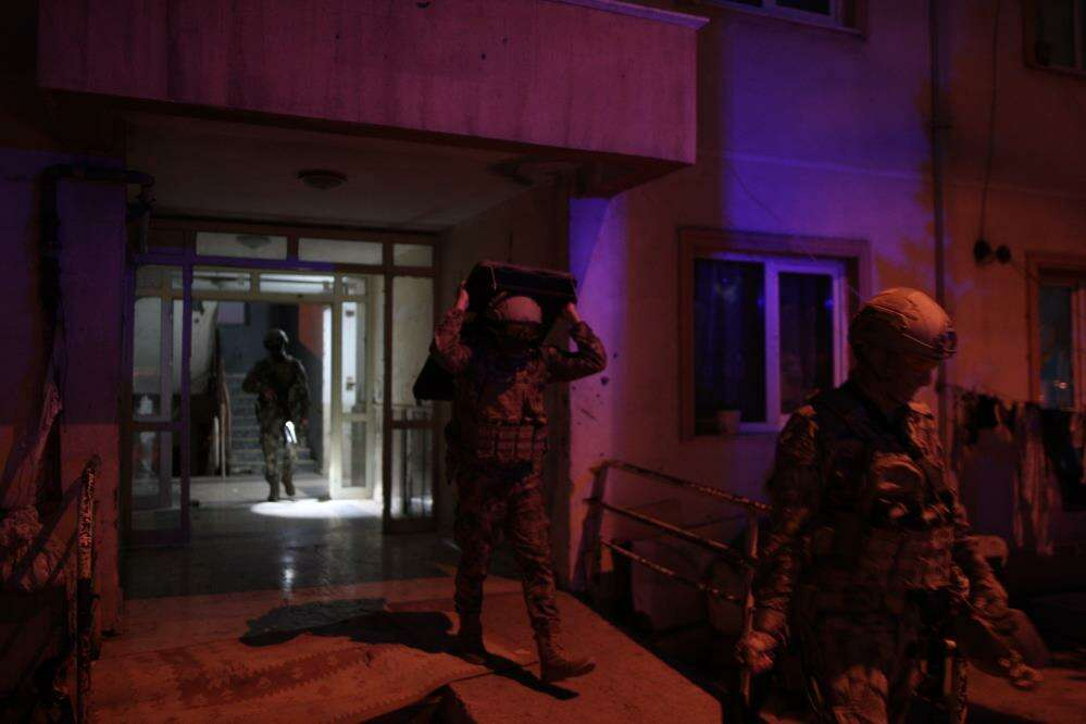 Özel harekat, çevik kuvvet, asayiş ekiplerinin yanısıra helikopterin de havadan destek verdiği operasyonda şüphelilerin kapıları koçbaşlarıyla kırıldı. Birçok şüphelinin yakalandığı operasyon kameralara anbean yansıdı.