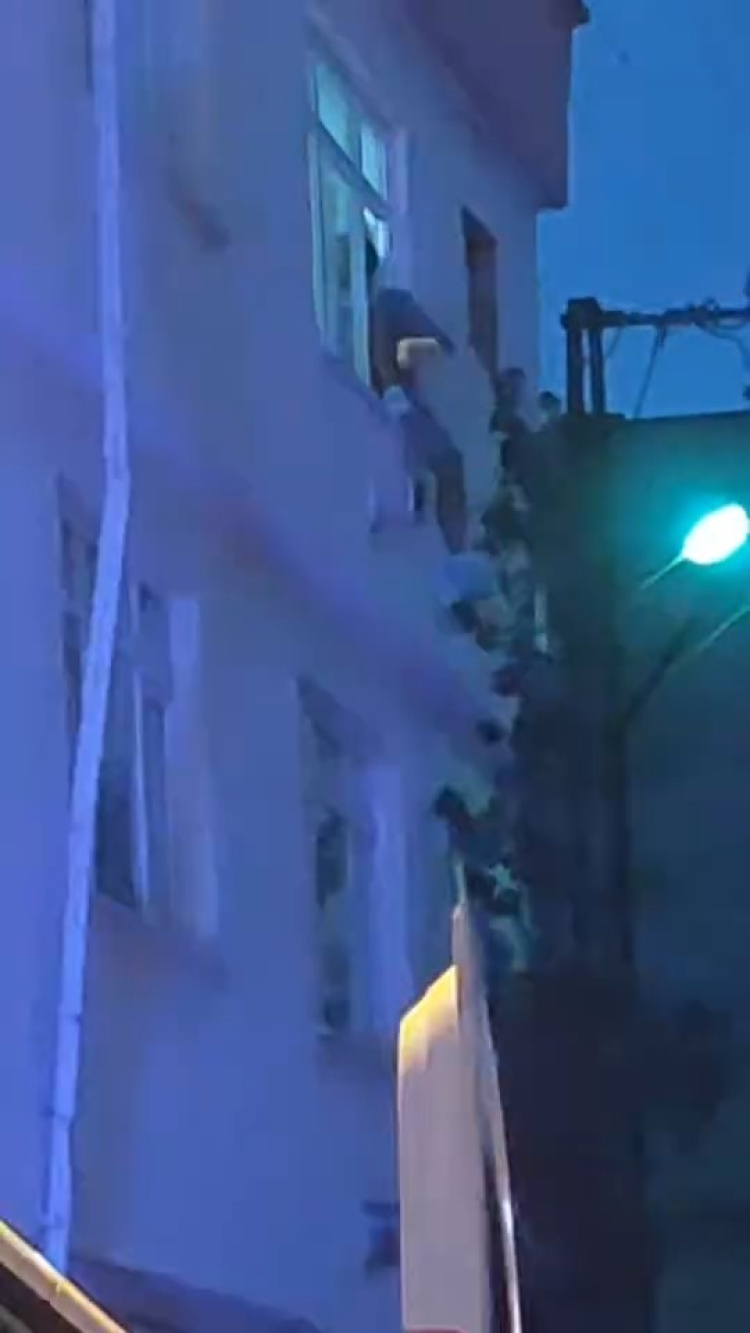 Bursa'da bir kişi camdan sarkarak intihar girişiminde bulundu. Polis ekipleri uzun süren çabanın ardından şahsı evin içine çekerek kurtardı.