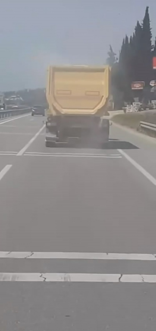Bursa'da kamyon sürücüsü, dorsesine yüklediği kumların üzerine branda çekmeyince kumlar yola döküldü. İzmir yolunda son sürat giden sürücü, rüzgarın etkisiyle yola dökülen kumları görmezden gelirken, trafiği de tehlikeye attı. O anlar ise kameraya yansıdı.