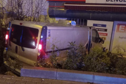 Bursa'da otomobille çarpışan hafif ticari araç yoldan çıkarak bir eczanenin bahçesine daldı. O anlar anbean güvenlik kamerasına yansıdı.