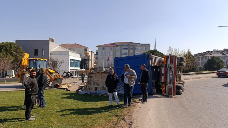 Kaza, saat 15.30 sıralarında Bursa-Ankara kara yolu üzeri İnegöl girişindeki köprülü kavşakta meydana geldi. Bursa'dan gelip İnegöl'e dönüş yapmakta olan Cengiz K. (44) yönetimindeki 35 CZZ 70 plakalı ahşap palet yüklü kamyon, sürücüsünün kontrolünden çıkarak devrildi. Devrilen kamyonun sürücüsü yaralanırken, kamyon dorsesindeki paketler yola saçıldı. Yaralı sürücü kaza yerine sevk edilen Ambulansla İnegöl Devlet Hastanesine kaldırıldı.