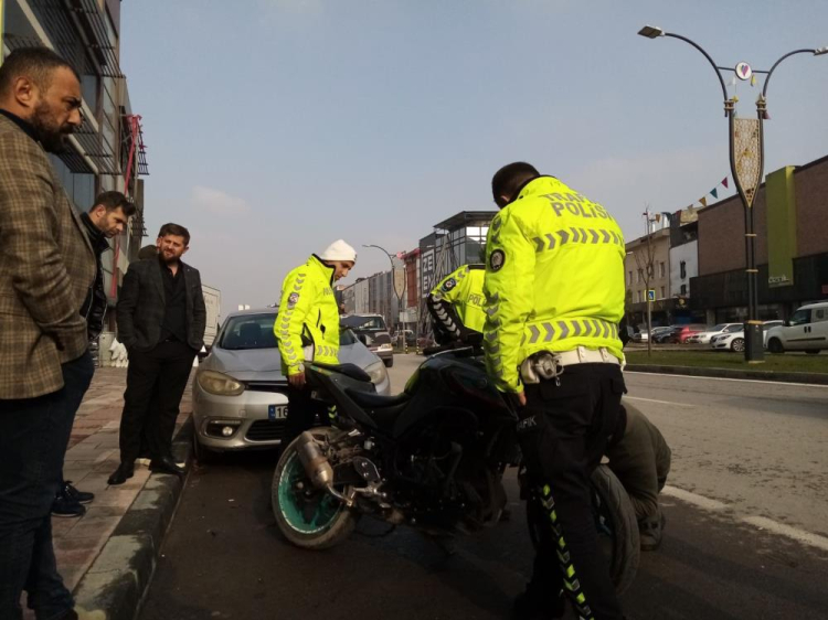 Kaza sonrası tescilsiz motosiklet trafik ekipleri tarafından çekiciyle otoparka çekilirken, sürücüye ise ehliyetsiz araç kullanmaktan 12 bin 977 lira cezai işlem uygulandı.