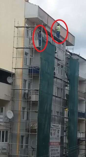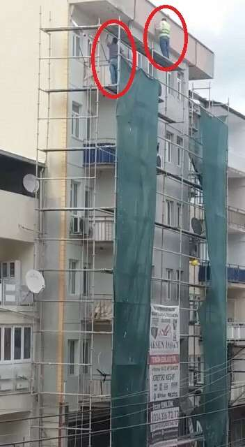 Dün öğle saatlerinde iş güvenliği almadan iskelede çalışan işçilerin ölümle dans ettiği o anlar cep telefonuyla kaydedilmişti. İşçiler çevredeki vatandaşlar tarafından uyarılmasına rağmen hiçbir tedbir alınmadı.