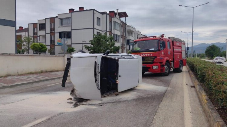 Bursa'nın İnegöl ilçesinde sürücüsünün kontrolünden çıkan otomobil, ağaca çarpıp yan yattı.