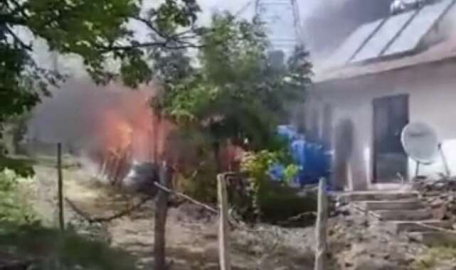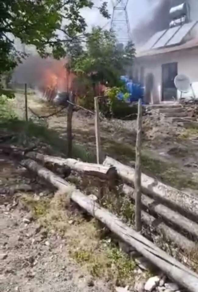 Evlerin alev topuna döndüğü yangında bahçede park halinde bulunan bir traktör de yanarak kullanılmaz hale geldi.