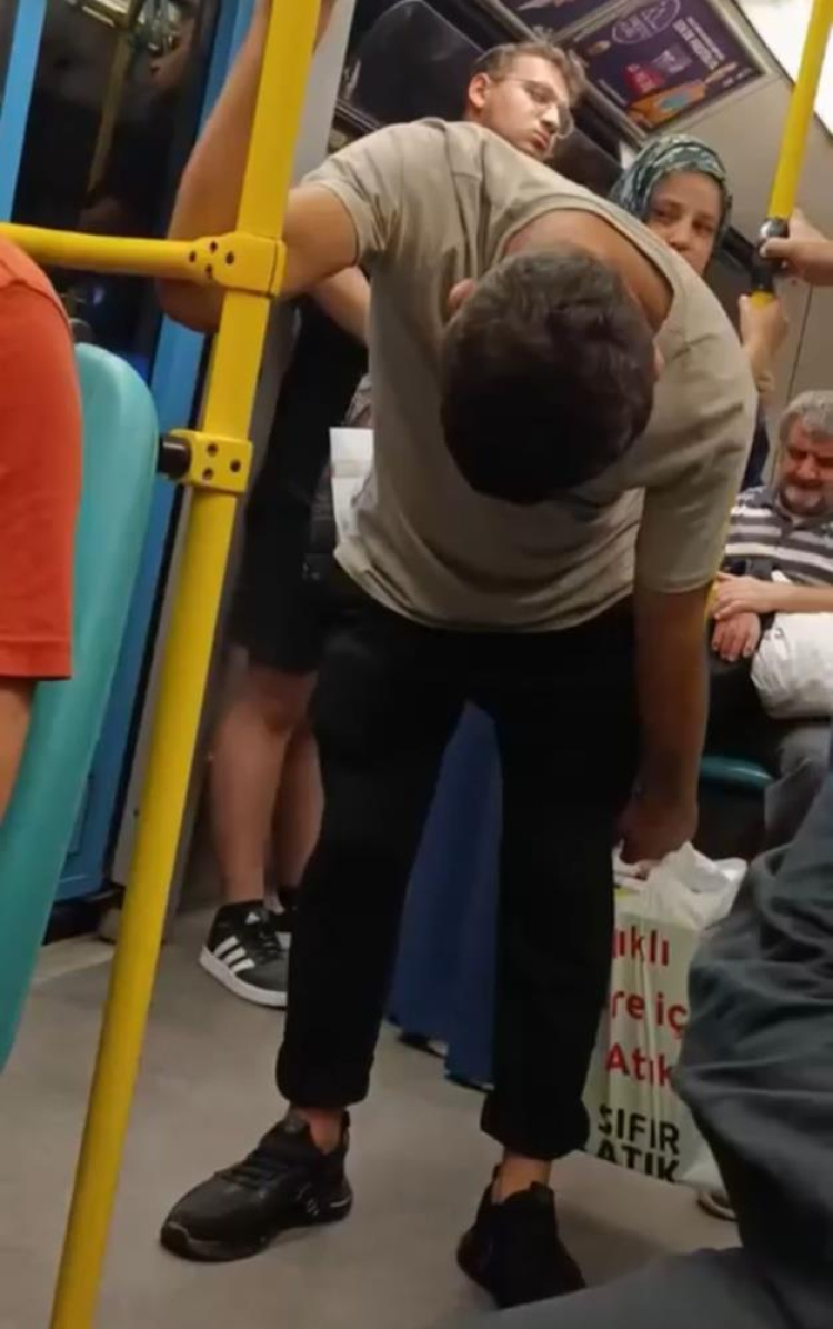 Bursa'da uyuşturucu madde etkisindeki bir kişi metroya bindi. Metro içinde kendinden geçen şahıs vatandaşlara tedirgin anlar yaşattı.