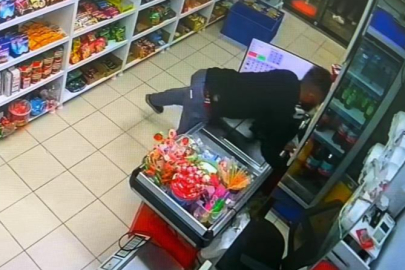 Bursa'da bir şüpheli girdiği evden 10 bin lira çaldıktan sonra markette yöneldi. Kasiyerin olmadığını görünce kasadan cep telefonunu çalıp kayıplara karıştı. Bursa Asayiş Şube Müdürlüğü Hırsızlık Büro Amirliği ekiplerince kameralardan kimliği tespit edilen şüpheli yakalanırken, hırsızlık anları güvenlik kamerasına anbean yansıdı.