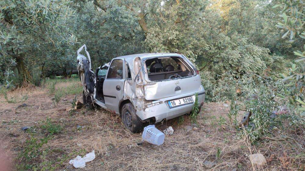 Bursa'da otomobil zeytinliğe daldı: 1 ölü, 1 yaralı