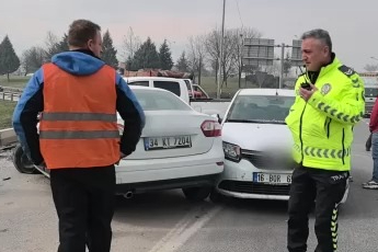 Kaza, saat 13.30 sıralarında İnegöl ile Alanyurt'u bağlayan köprülü kavşakta meydana geldi. İnegöl'den Eskişehir'e dönüş yapan Figen K. (26) idaresindeki 34 KT 7204 plakalı otomobil, aynı yöne seyreden Muhsin B. (28) idaresindeki 16 BOR 658 plakalı otomobille çarpıştı. Kazada sürücüler yaralandı. Yaralılar kaza yerine sevk edilen ambulansla İnegöl Devlet Hastanesine kaldırıldı. Polis kazayla ilgili tahkikat başlattı.