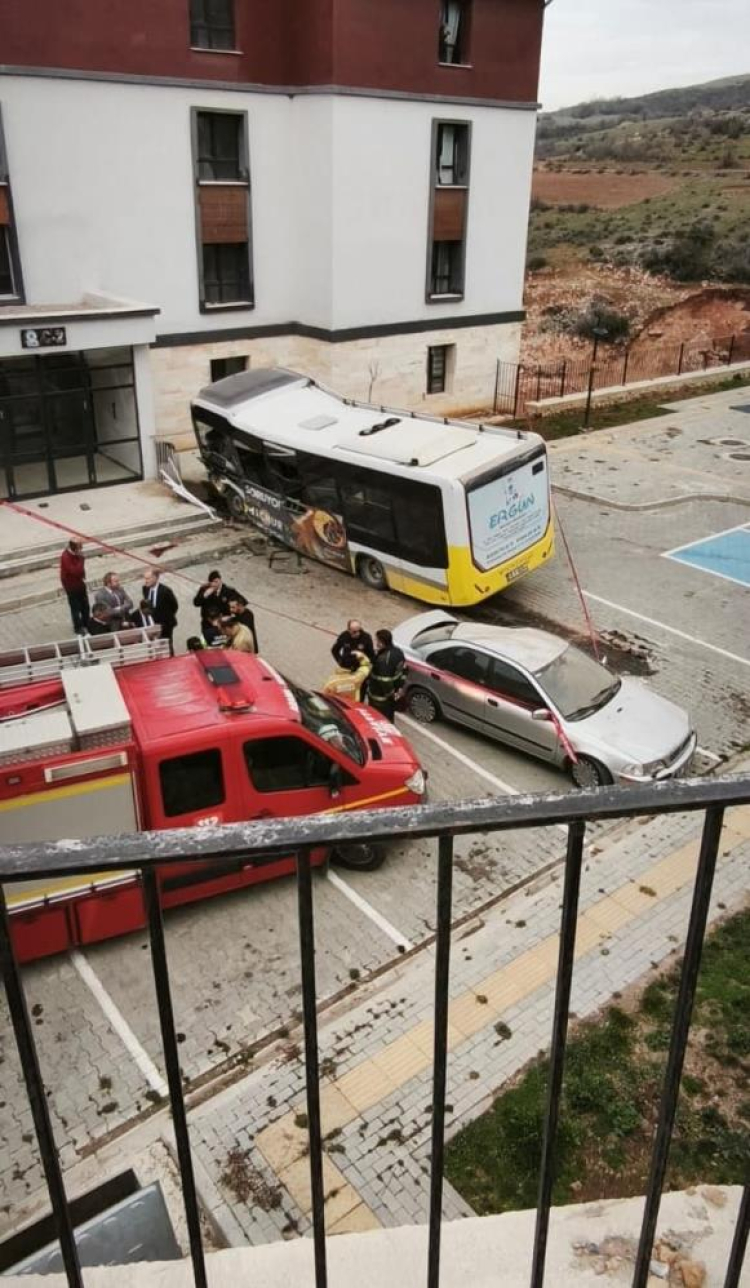 Bursa'nın İnegöl ilçesinde kontrolden çıkan özel halk otobüsü 10 metrelik istinat duvarından uçtu. Başka bir aracın üstüne düşen otobüsün şoförü ağır yaralandı.