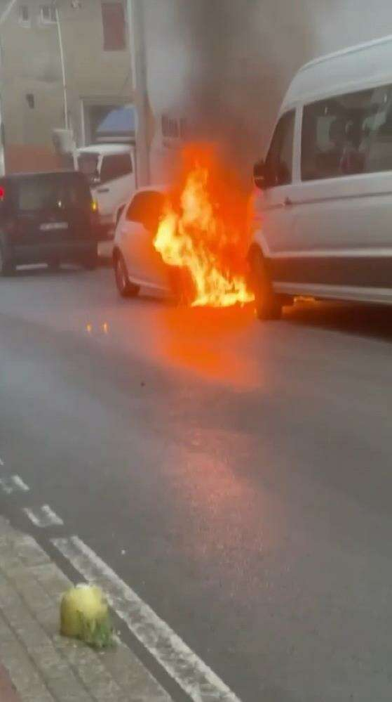 Bursa'da park halindeki 2 otomobil alev alev yandı. O anlar saniye saniye cep telefon kameralarına yansıdı.