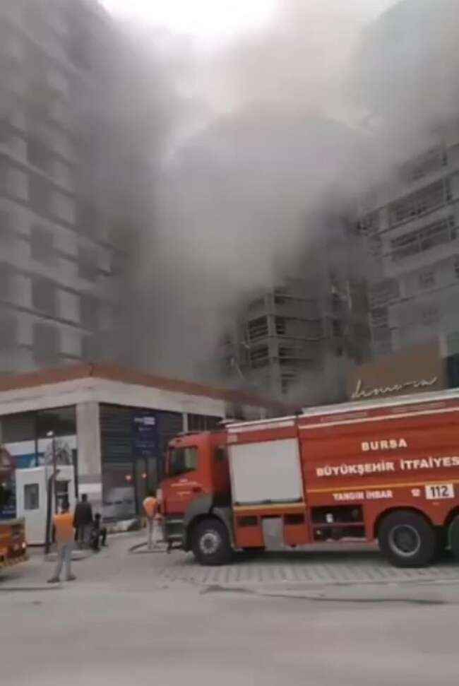 Bursa’da rezidans inşaatında yangın çıktı. Bütün işçiler tahliye edilirken, yangın itfaiye ekipleri tarafından söndürüldü.