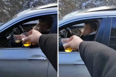 Bursa Uludağ yolunda ilerleyen otomobil sürücüsü, yanına başka bir araçla yanaşan arkadaşı ile seyir halindeyken alkol alıp kadeh tokuşturdu. O anları kayda alan sürücü, sosyal medyada paylaşım yapınca vatandaşlar tarafından da tepki aldı. Olayla ilgili tahkikat başlatıldı.