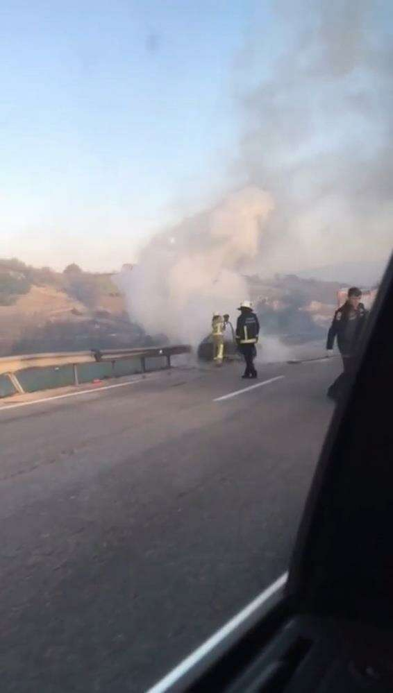 Bursa'da seyir halindeki otomobil alev alev yandı