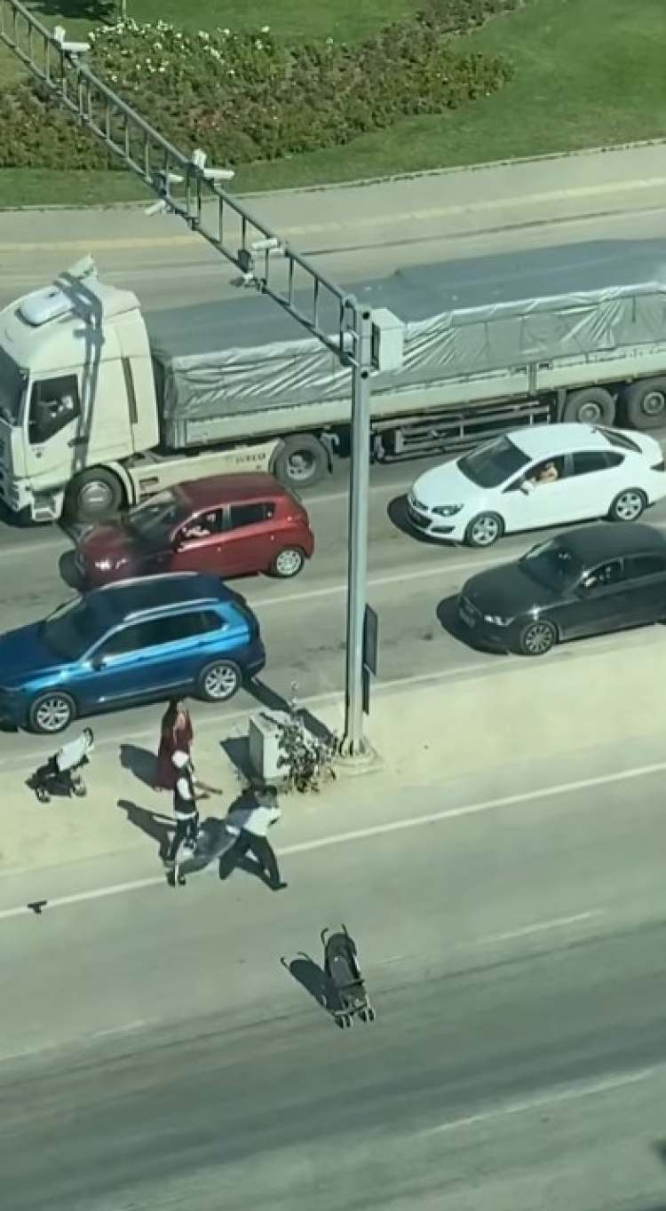Kavga sırasında yola fırlayan bebek arabasının içinde bebek olmayışı dilencilerin vatandaşları nasıl istismar ettiklerini bir kez daha gözler önüne serdi.