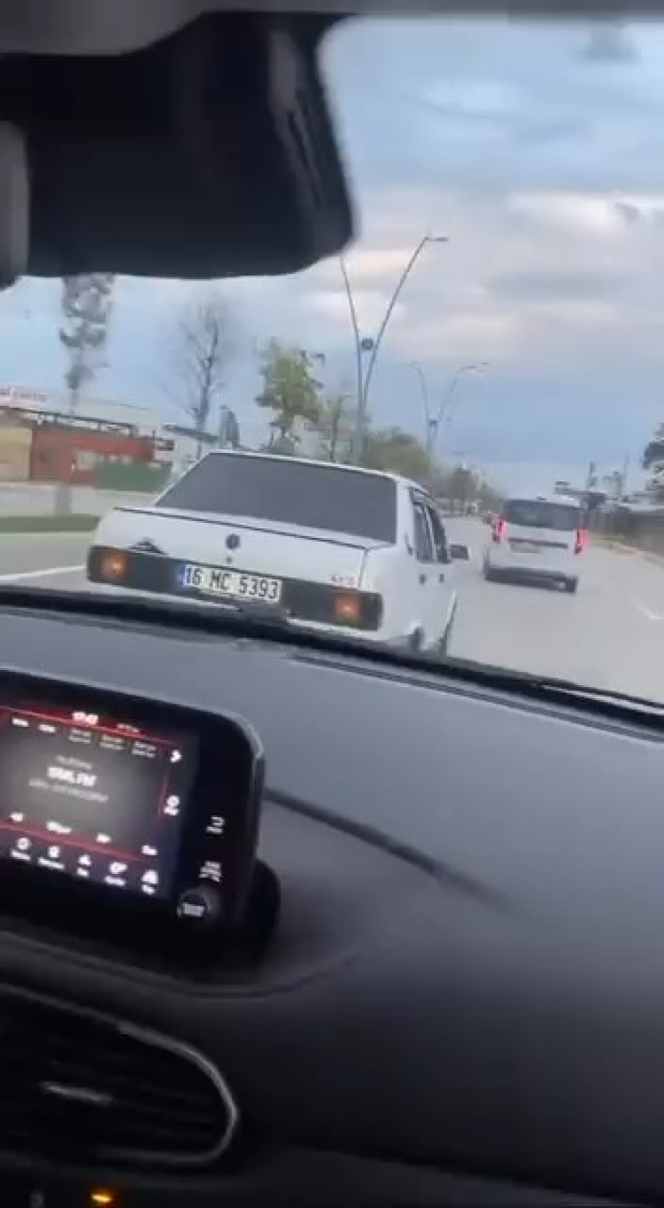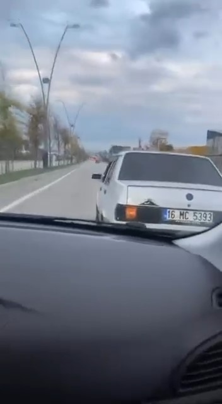 Olay, Bursa’da Nilüfer ilçesi Çalı Yolu üzerinde yaşandı. İddiaya göre trafikte seyir halinde olan iki sürücü tartıştı. 16 MC 5393 plakalı otomobilin sürücüsü ise tartıştığı sürücünün önünü keserek ilerledi. Trafiği de tehlikeye atan sürücünün görüntüsü arkadaki sürücü tarafından saniye saniye kaydedildi.