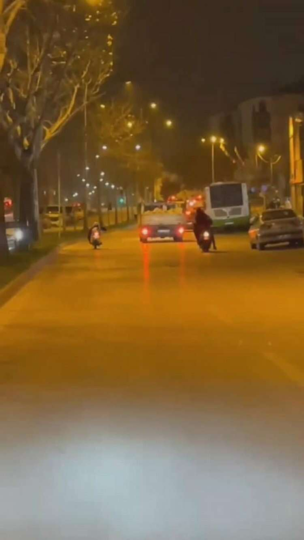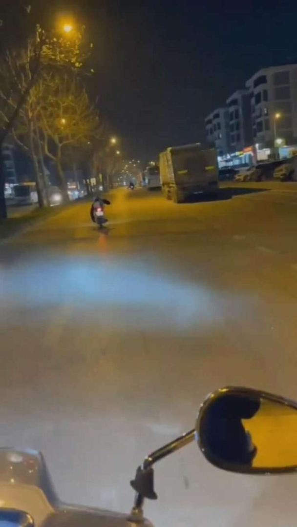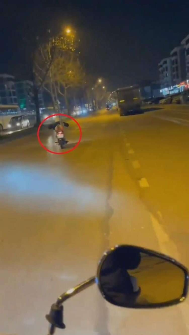 Olay, merkez Osmangazi ilçesinde meydana geldi. Edinilen bilgiye göre, canını hiçe sayan genç, motosikletin üzerine uzanarak seyretti. Bir süre böyle seyreden genç, yürekleri ağza getirdi. O anlar başka bir motosiklet sürücüsünün cep telefonu kamerasına yansıdı.