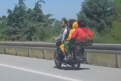Olay, Bursa-Karacabey Yolu üzerinde meydana geldi. Motosiklete 4 kişi binen aile, kilometrelerce yol kat etti. Tehlikeli yolculuğu gören diğer vatandaşlar, korna ile ikaz etse de sonuç alamadı. Tehlikeli yolculuk saniye saniye amatör kameraya yansıdı.