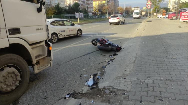 Bursa'nın Orhangazi ilçesinde ana yol üzerinde seyir halindeki bir motosiklet, iddiaya göre sürücüsü tek teker üzerinde gitmeye çalışırken kontrolden çıkarak yol kenarında park halinde olan bir minibüse çarptı. Savrulan motosiklet ise bir TIR'ın önünde sürüklendi. Kazada motosiklet sürücüsü ağır yaralandı.