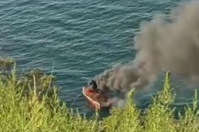Bursa'nın Mudanya ilçesinde balık tutan baba ve oğlunun bulunduğu teknenin motorunun alev alev alırken alevler kısa sürede tüm tekneyi sardı. Teknede bulunan baba ve oğlu ise canlarını zor kurtararak kıyı çıktı.