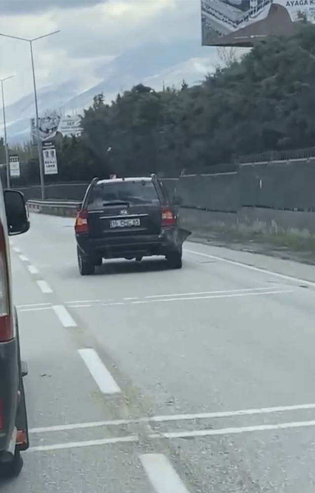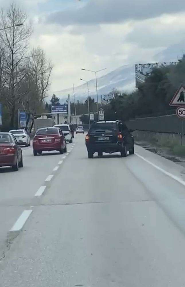 Bursa'da trafikte yan yan giden cip ile yolculuk yaptı