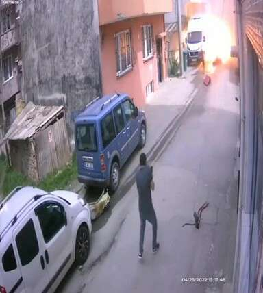İnfilak eden uçağın düştüğü sokakta 5 metre ileride biri çocuk iki kişinin de mutlak ölümden kurtulduğu görüntülerden anlaşılıyor.
