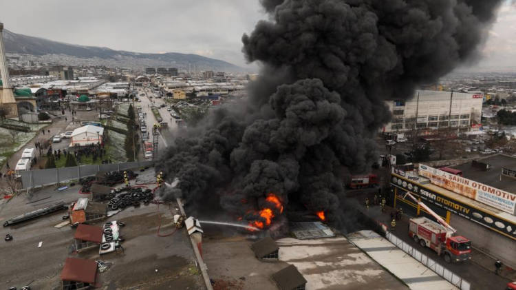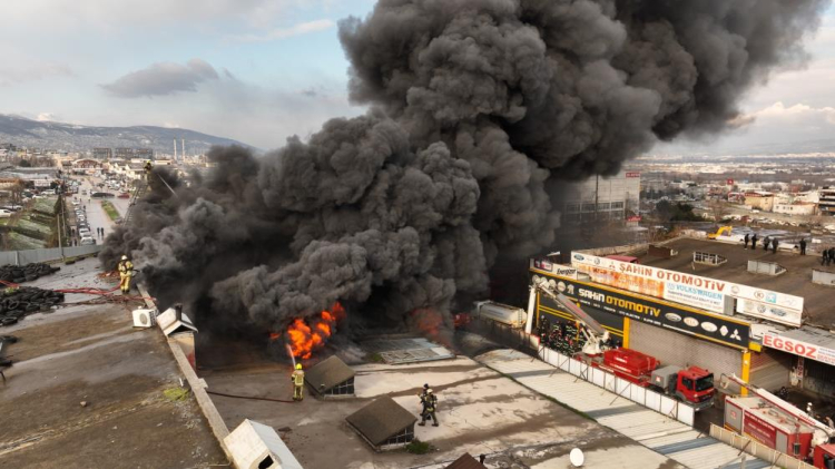 Edinilen bilgiye göre, Yiğitler Mahallesi'ndeki Otomobil Sanayi Sitesi'nde (OTOSANSİT) madeni yağ satışı yapan bir iş yerinde henüz bilinmeyen nedenle yangın çıktı. Kısa sürede büyüyen yangın, tüm iş yerini kapladı. Patlamaların da yaşandığı yangın kısa sürede bitişikteki 2 ayrı iş yerine sıçradı. Yangın sırasında gökyüzünün siyah duman kapladı. Bursa'nın çeşitli yerlerinden dumanı gören vatandaşlar sosyal medya hesaplarından o anları paylaştı. Alev topuna dönen 3 iş yerindeki yangın dronla havadan da görüntülendi. Çevredekilerin ihbarı üzerine olay yerine çok sayıda sağlık, polis ve itfaiye ekibi sevk edildi. Yangına Büyükşehir Belediyesi İtfaiye Daire Başkanlığında eğitime gelen Filistin ve Libya'lı gruplar da müdahale etti. Zaman zaman parlamaların da görüldüğü yangın 3 saat süren yoğun çalışmanın ardından kontrol altına alınabildi.