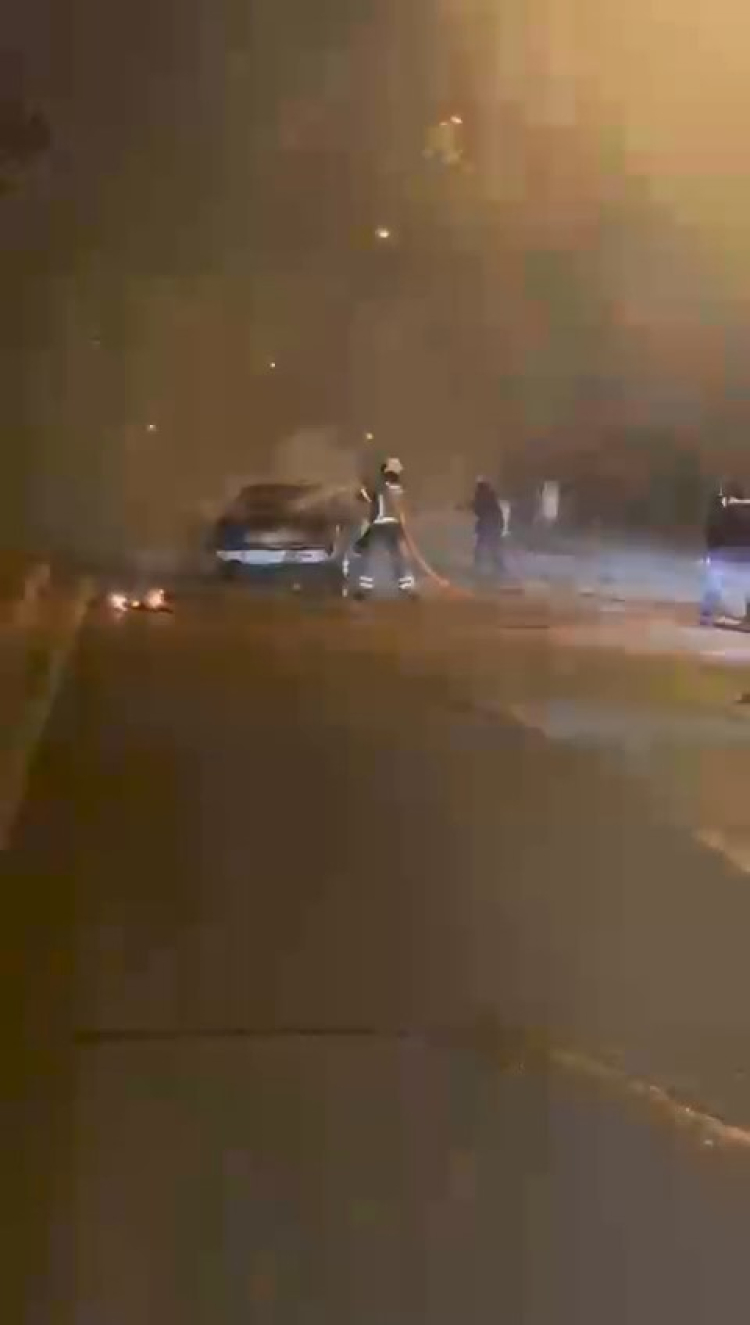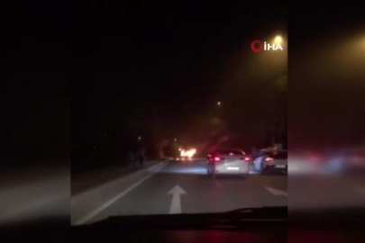 Bursa'nın Osmangazi ilçesinde seyir halindeki otomobil cadde üzerinde alev alev yandı.