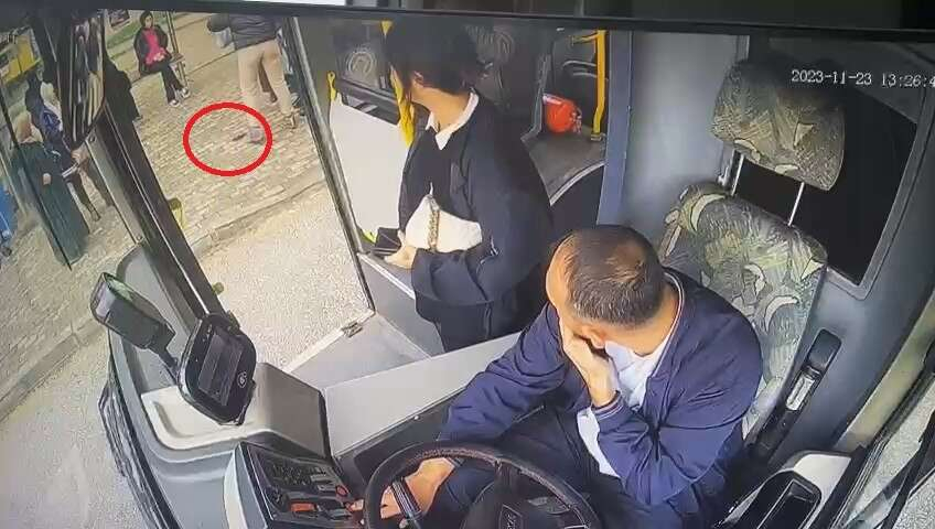 O anlar belediye otobüsünün güvenlik kamerasına an be an yansıdı.