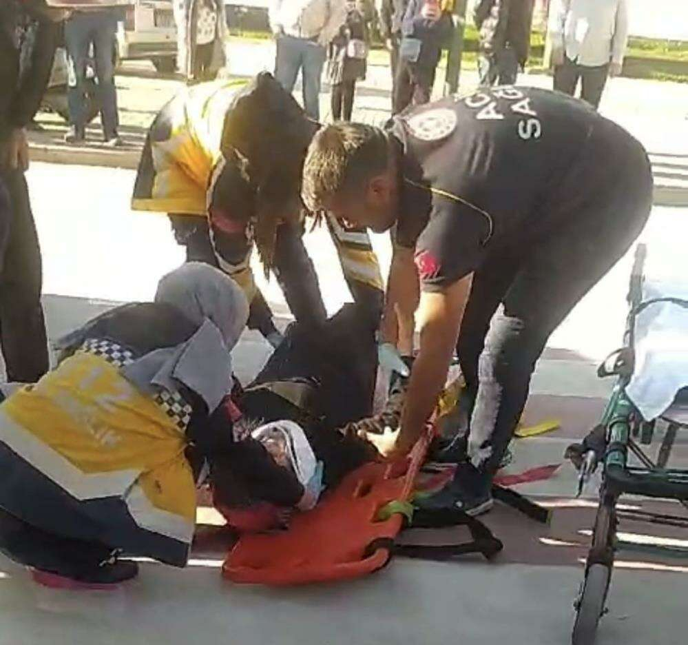Hafif şekilde yaralanan sürücü, yerde yatan yaralı eşinin elini hiç bırakmadı. Yaralı kadın ve sürücü olay yerine sevk edilen ambulansla hastaneye kaldırıldı.