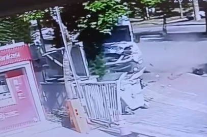 Kaza anı çevredeki bir işyerine ait güvenlik kamerasına saniye saniye yansıdı. Görüntülerde aracın hızla manevra yaptığı, ardından savrulup kaldırıma çıkarak yayaya çarptığı anlar net bir şekilde görülüyor.