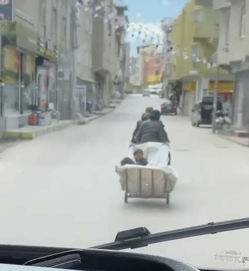 Olay, merkez Osmangazi ilçesi Emek Mahallesi'nde meydana geldi. Edinilen bilgiye göre, baba ve anne motosiklete bağladıkları çekçek arabasının içine kendi çocuklarını koydu. Gidecekleri yere kadar çocuklarını çekçek arabasının içinde götüren çift korku dolu anlar yaşattı. İzleyenleri endişelendiren görüntüler kameraya yansıdı.