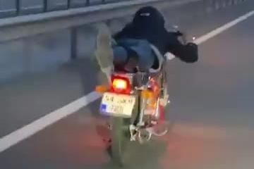 Görüntüler, İnegöl ilçesi Bursa-Ankara yolunda kaydedildi. İnegöl'den Bursa istikametine seyir halinde olan kasklı sürücü, motosikletin üzerine yüzüstü yattı. Motosikleti bir süre bu şekilde kullanan ve zaman zaman hızını 125 kilometreye kadar çıkaran şahsı görenler o anları görüntüledi.